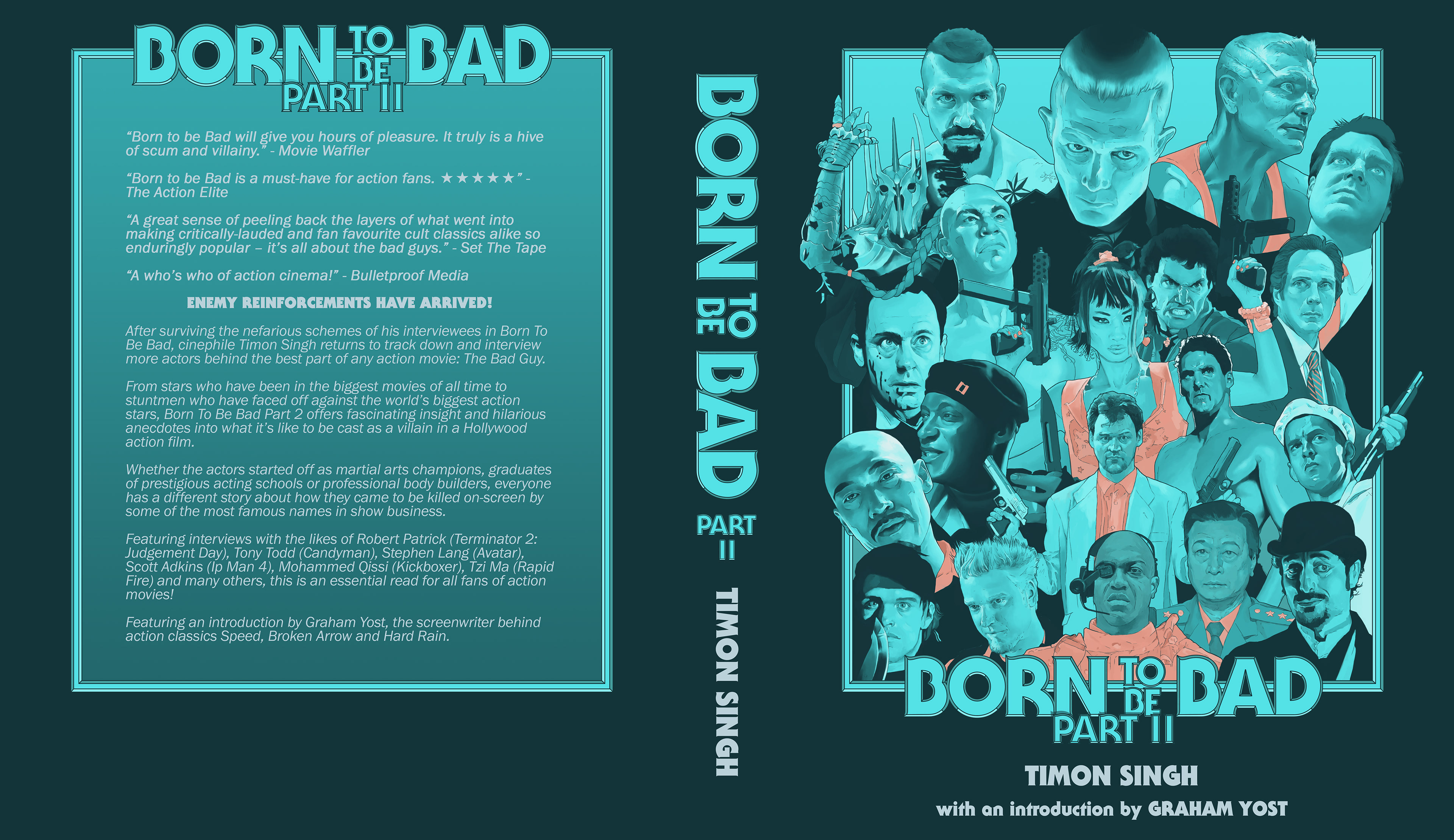 Born to be Bad - Talking to the greatest villains in Action cinema. Logo design and cover illustration for Timon Singh's books, released through Bear Manor Media.